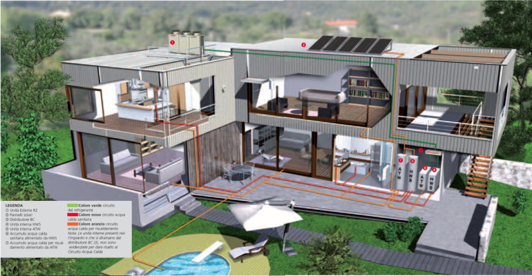 Soğutucu akımı inverter kontrollü bir kompresör veya kompresörlerle çeşitlendirilerek, havası şartlandırılmış mekanlara göre soğutucu akışkanın uyum göstermesi sağlanır. İleri düzey bir kontrol sistemi ısıtma ve soğutma modları arasında geçiş sağlar.
